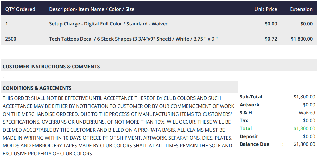 | Setup Charge - Digital Full Color / Standard - Waived | 0.00 | 1 |
